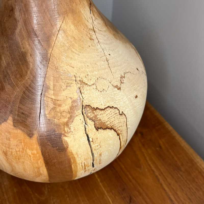 Unique Alder wood lamp by John Fox, Sligo. Hand-turned from solid wood, left with natural cracks and character, finished with natural oils. Each piece is one of a kind, proudly crafted in Ireland.