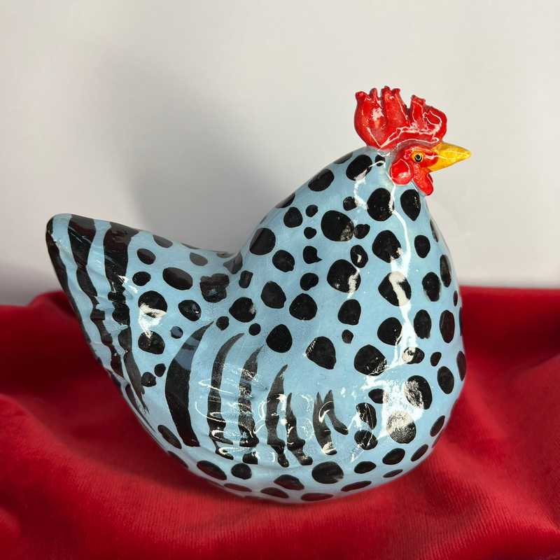 Each piece is a true original, shaped and glazed entirely by hand. The hen you see will be similar to the one you receive, but each has its own unique markings, expression, and shape — that’s the beauty of handmade art.