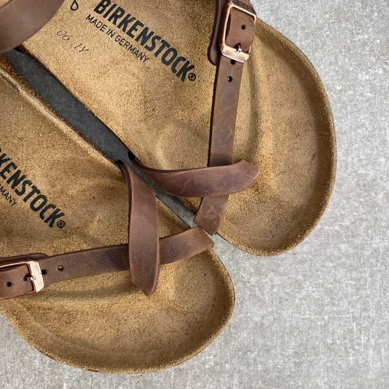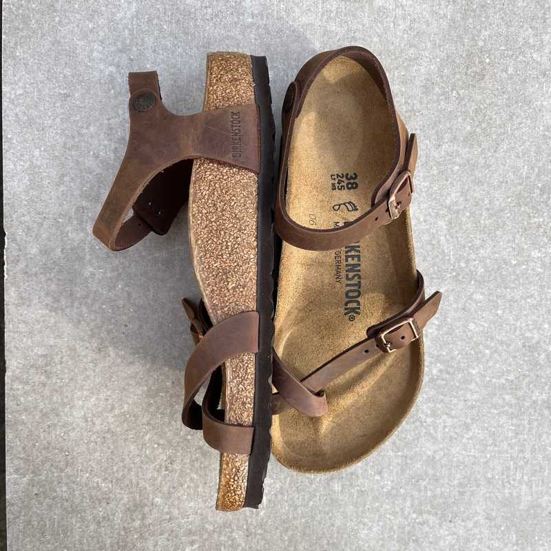The BIRKENSTOCK Taormina stands out with its narrow ankle strap that gives the sandal a feminine touch. The leather sandal with an ankle strap combines optimum grip and comfort. The Taormina has two straps with metal buckles. The upper is made from luxurious, oiled leather Birkenstock with an open-selvage finish.