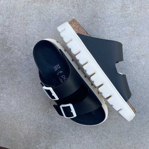 These chic platform sandals boast a chunky sole that adds height and trendiness to any outfit. Platform Birkenstock are designed for both fashion and function, they feature the Birkenstock footbed for comfort and support. Whether you're dressing up a casual look or making a statement, the Birkenstock two strap platform sandals are the perfect choice. Explore our collection of chunky platform Arizona Birkenstock now.